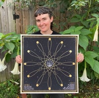 This calendar is 20 x 20" and drawn by me, V Adams. They are screen-printed in two colors--charcoal grey black and rich champagne gold--on heavyweight cream paper by Head Light Press!