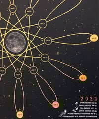 This year's looping design was inspired by the trajectory of the moon. As it encircles the earth on its nightly path, the moon creates ripples of life on earth--guiding bird migrations, inciting the mass spawning of corals, and generating vast oceanic tides. And what pulls and shifts do these lunar movements create in us? With water, air, and matter flowing through our veins, we too are bodies in motion.